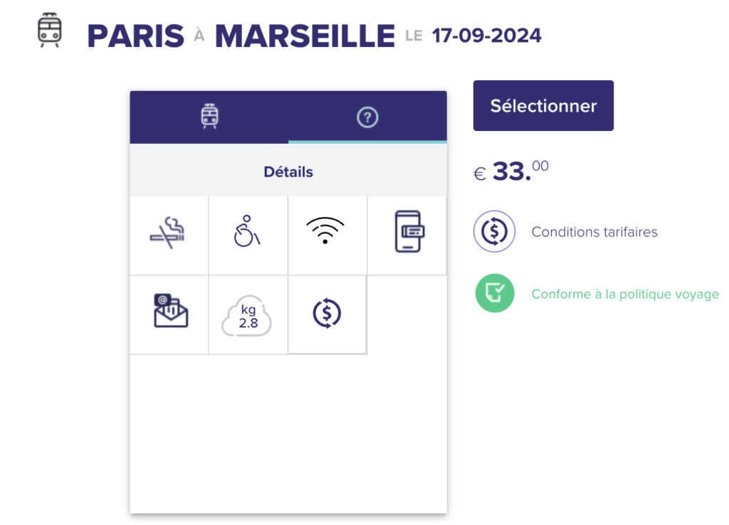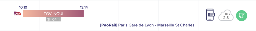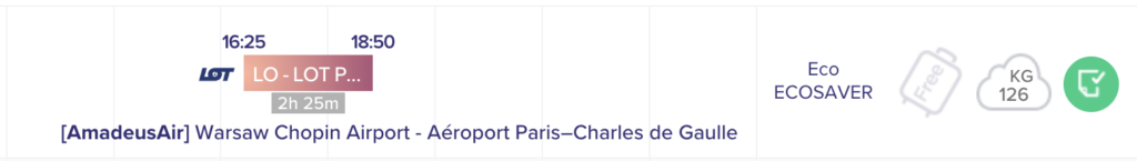 For air and rail, you can see the emissions displayed for each connection in the search results view, as well as at the cart view, in the details section for selected trip.